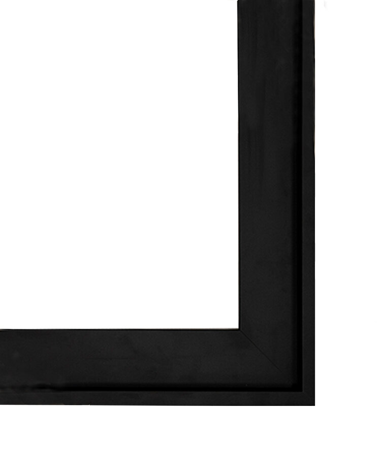 De lijst heeft een strak mat zwart fineer. Deze baklijst is extra smal met een profielbreedte van 5 mm.