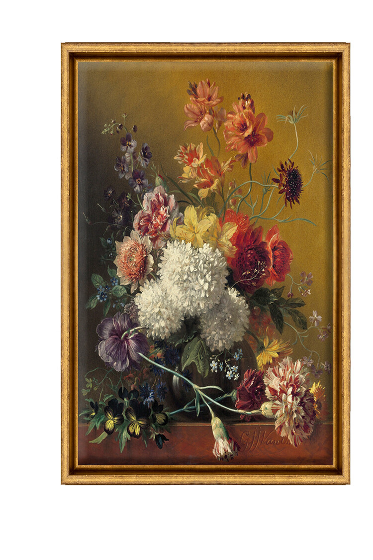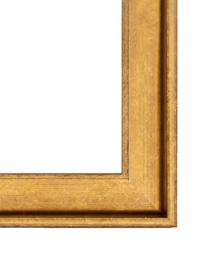 De baklijst is oud goud gekleurd, wat voor een klassieke uitstraling zorgt. De lijst past goed bij werken met zachte kleuren.