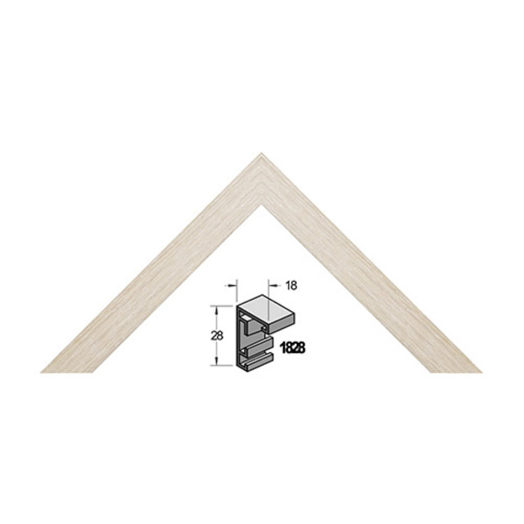 De Barth (1828BW) eiken wit gewassen fineer lijst is voorzien van helder float geslepen glas en heeft een profielbreedte (vanaf de voorzijde gezien) van 18 mm en een hoogte (vanaf de buitenzijde gezien) van 28 mm.
