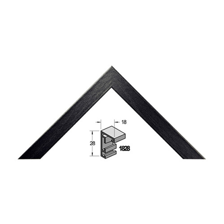 De Barth (1828ZWE) zwart essen (folie)fineer lijst is voorzien van helder float geslepen glas en heeft een profielbreedte (vanaf de voorzijde gezien) van 18 mm en een hoogte (vanaf de buitenzijde gezien) van 28 mm.