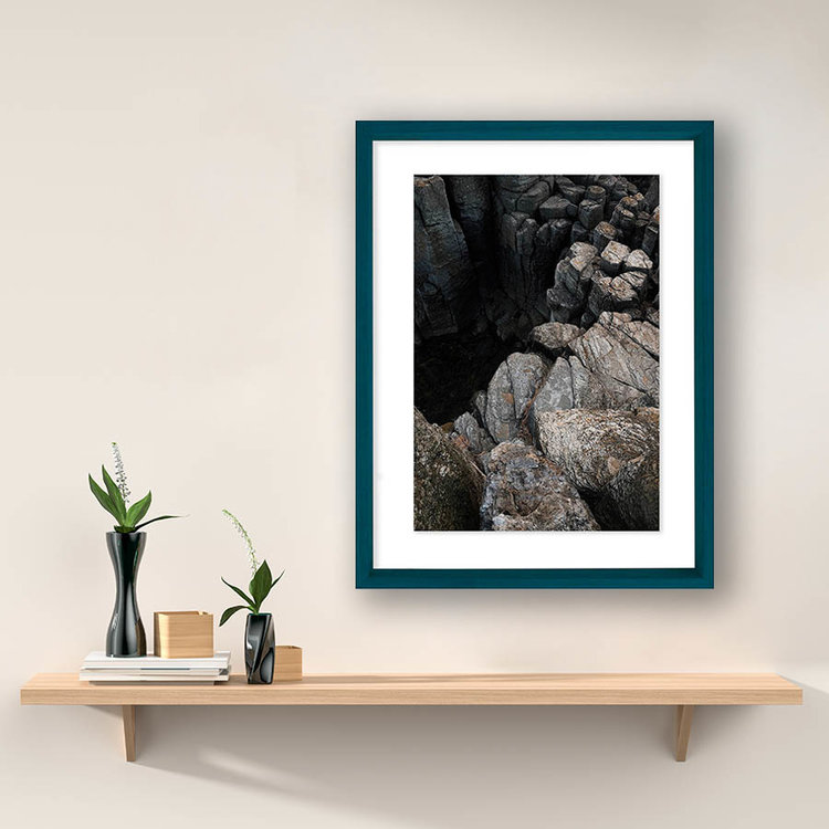 Optioneel kun je kiezen voor de uitvoering met een 8 mm hoge spacer. Deze spacer is in dezelfde kleur blauwe fineer folie en zorgt ervoor dat je werk 8 mm van het glas vrij komt. Of je kunt een 3D werk met een dikte tot 7 mm achter het glas plaatsen zonder dat het glas geraakt wordt.