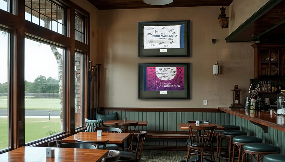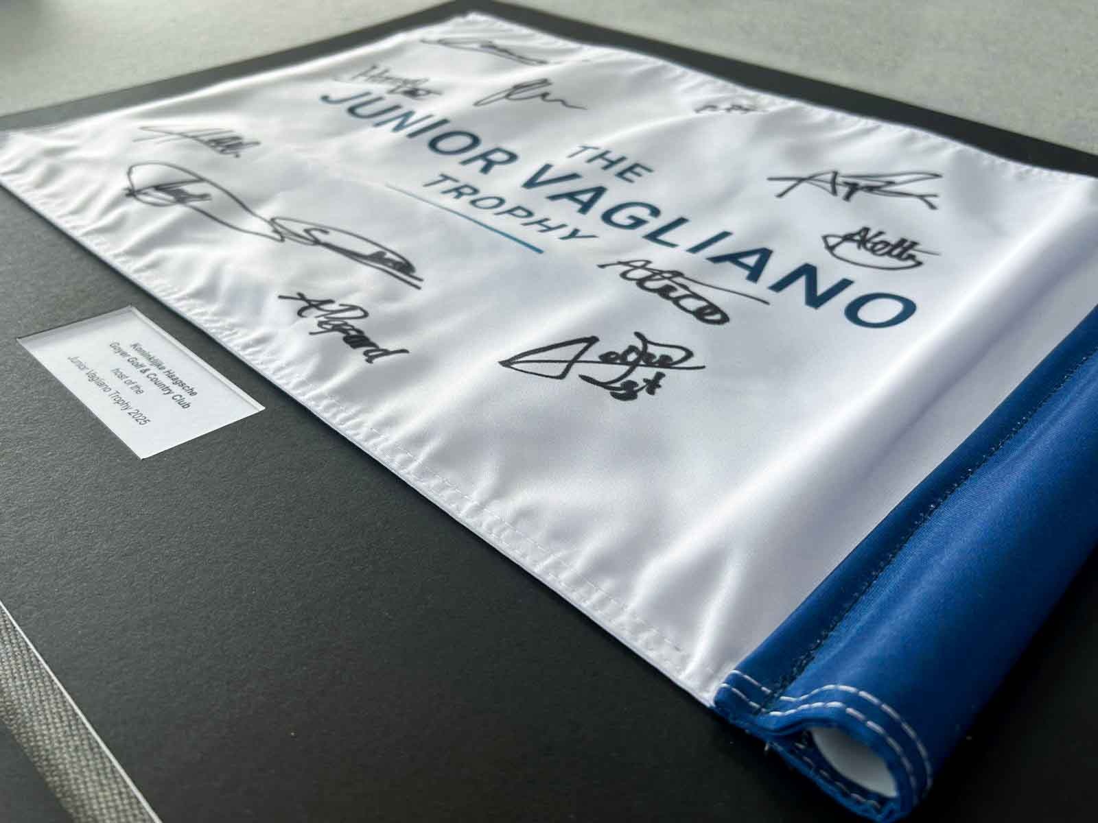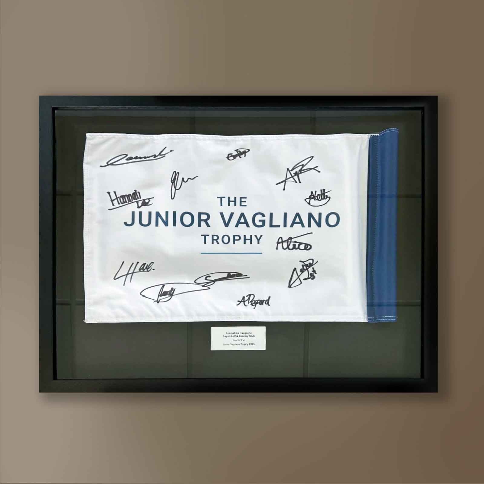 Voor de Nederlandse Golf Federatie mochten wij een unieke opdracht uitvoeren: het inlijsten van gesigneerde vlaggen van iconische golftoernooien, zoals de Junior Vagliano Trophy, Vagliano Trophy en het Dutch Ladies Open. Deze vlaggen dragen niet alleen de handtekeningen van getalenteerde spelers, maar vertegenwoordigen ook de passie, prestaties en bijzondere momenten die het golfen in Nederland zo waardevol maken.