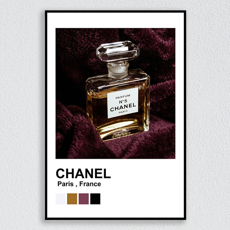 C Parfume art print ingelijst in zwarte aluminium lijst