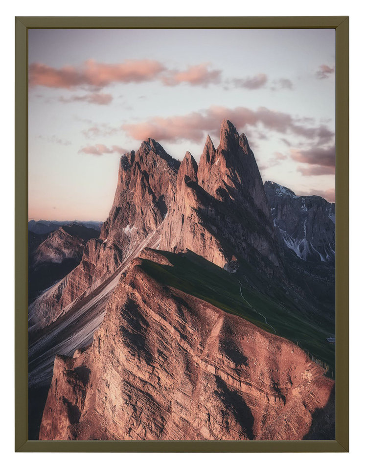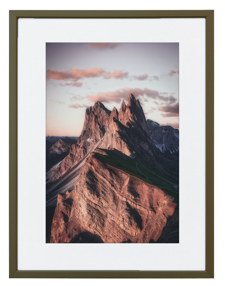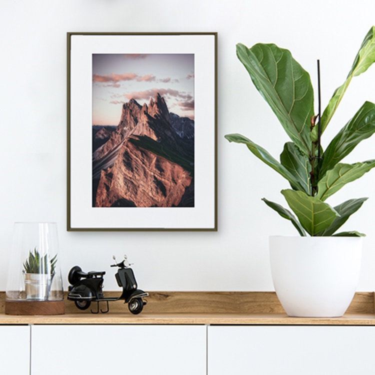 De donker bronzen matte uitvoering staat goed op alle achtergronden, van licht tot donker. Al onze wissellijsten worden standaard aangeboden met helder float geslepen glas (2 mm dik).