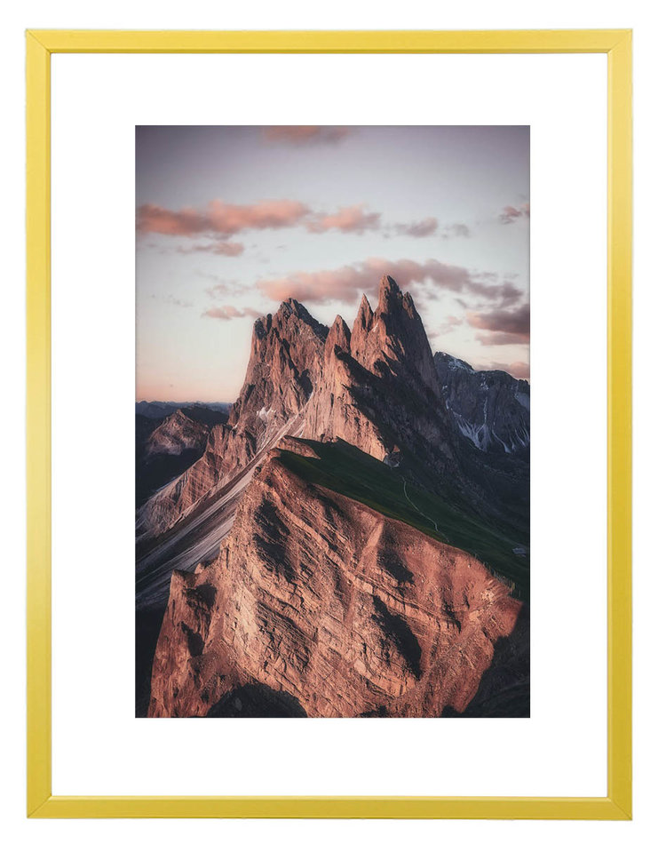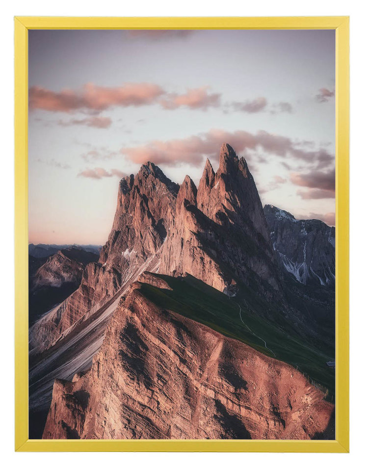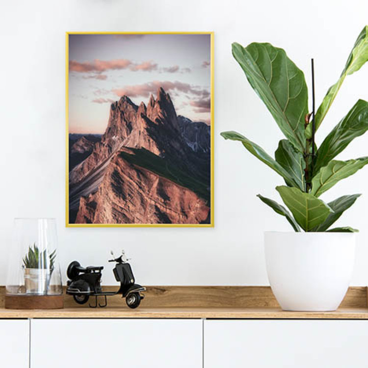 De mat gouden uitvoering staat goed op alle achtergronden, van licht tot donker. Al onze D-Line wissellijsten worden standaard geleverd met helder float geslepen glas (2 mm dik).