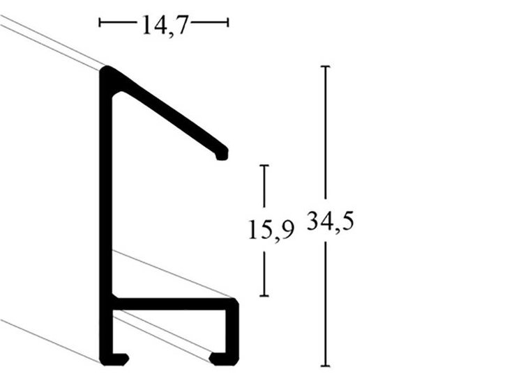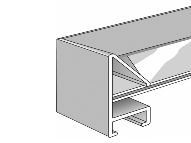 Het aluminium profiel loopt van buiten schuin naar binnen toe (zie de afbeelding van de doorsnede van de lijst) waardoor het geheel er extra strak komt uit te zien.