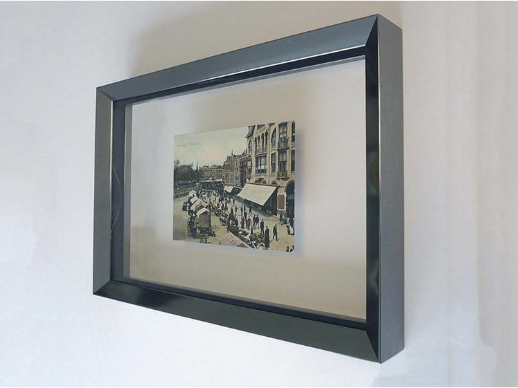 Echt iets aparts, een floating frame oftewel de mogelijkheid om in een lijst je werk te laten zweven! Door het werk tussen 2 glasplaten te klemmen lijkt het net of het zweeft in de lijst. Keuze uit meerdere kleuren en afwerkingen van de aluminium lijst.