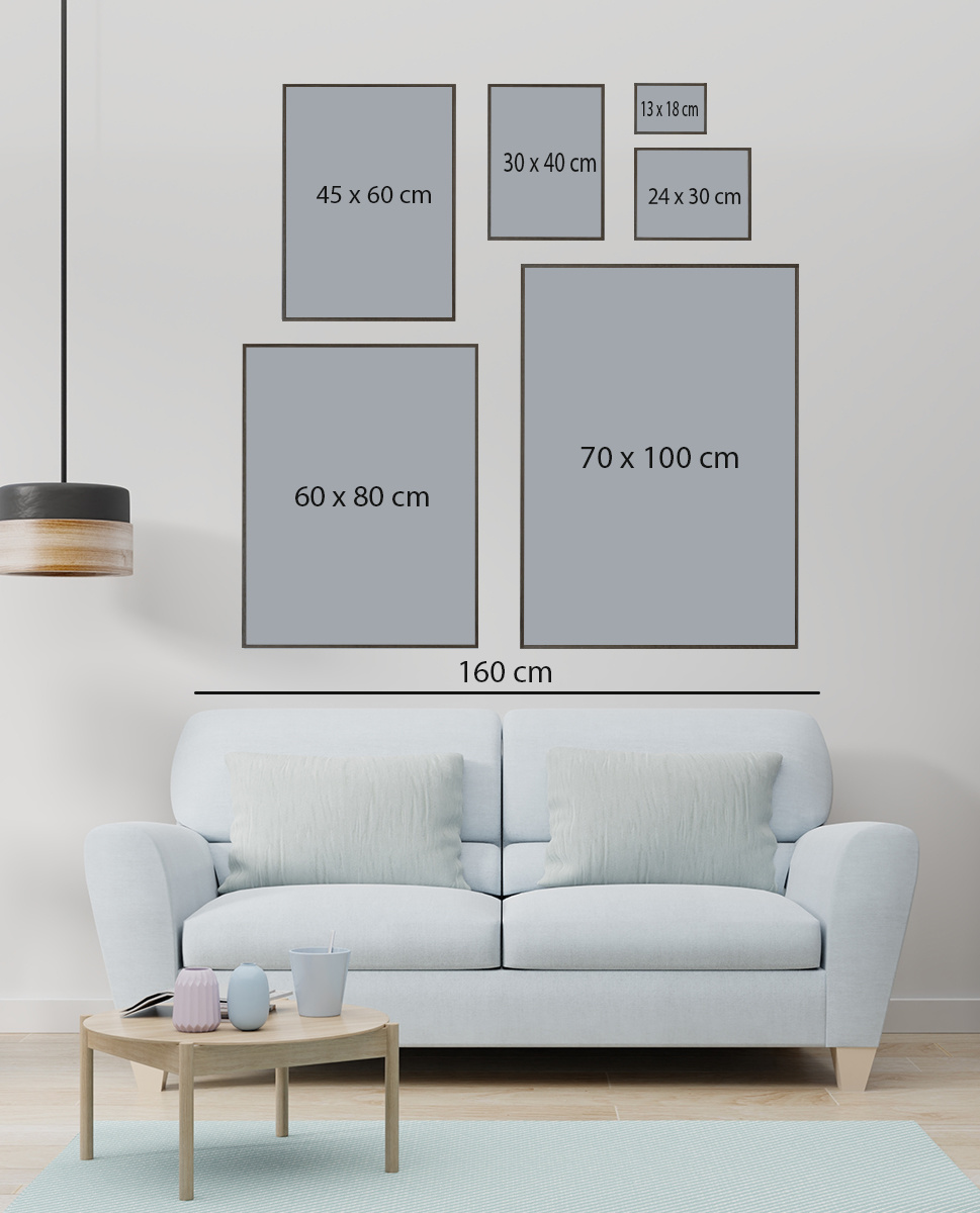 Vanaf 40 x 40 cm - Hoogwaardige MDF achterwand met draaiveren, hoekveren en 3 punts-ophangsysteem. Kleinere formaten met een verplaatsbare zaagtandhanger in de lijstrand.