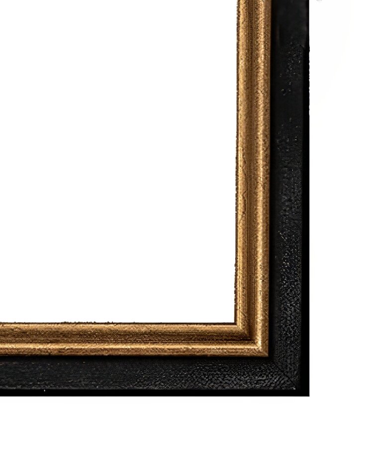 Een klassieke zwarte lijst met gouden rand voor het op maat inlijsten van zowel een art werk op papier of paneel. Deze lijst wordt volledig op maat voor jou gemaakt - ook museumglas is mogelijk en wij kunnen het inlijstwerk verzorgen