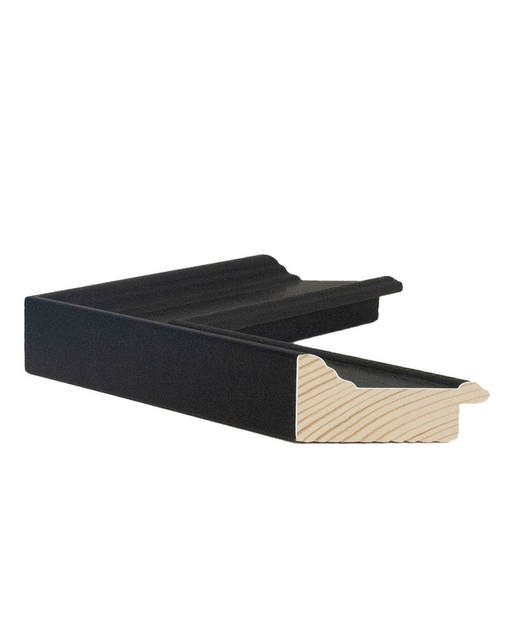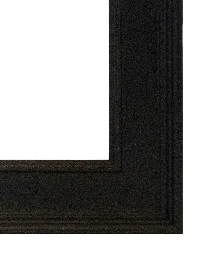 Deze lijst heeft een matte afwerking in de kleur zwart. De houtstructuur blijft daarin zichtbaar. De binnenrand heeft subtiele ornamenten waardoor deze lijst een robuuste en toch rustig klassieke look heeft. Wil je je werk net even een extra accent geven, hebben we dit profiel ook met een bies van zilver DLF0326 of goud DLF0326.
