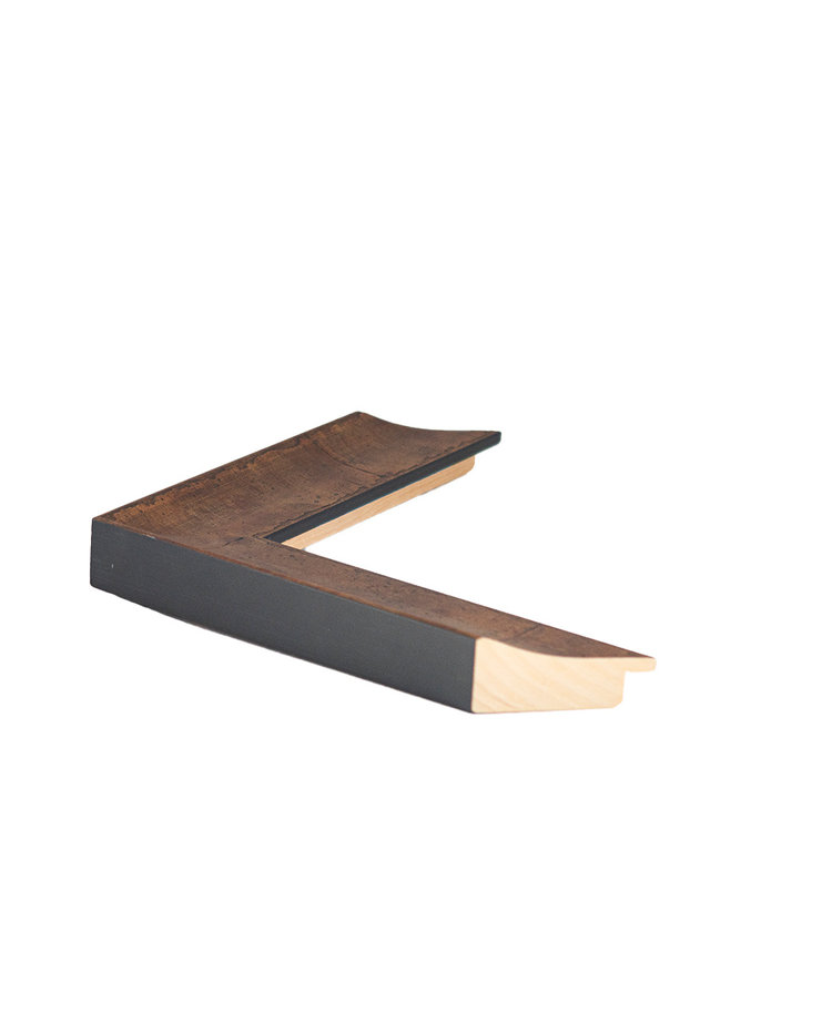 Ditzelfde profiel leveren we ook in twee andere bruintinten zoals DLF1070 Rustiek Koloniaal Bruin en in de kleur zwart. Deze lijsten passen goed bij werken met warme kleuren. Onze DLF179 Oud Lood heeft een vergelijkbare vorm en past bij een kunstwerk met meer grijstinten of koude kleuren.