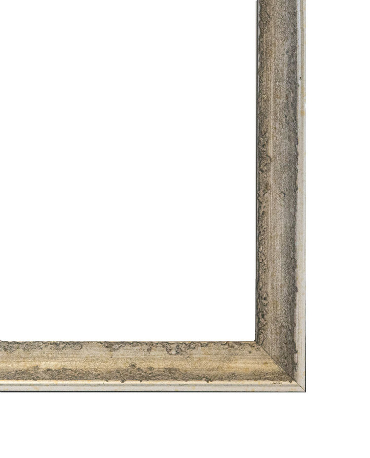 De verweerde en glanzende afwerking maakt deze lijst echt bijzonder. Deze lijst loopt mooi hol naar binnen toe en heeft een rustige vorm maar opvallende afwerking in de kleur oud zilver.