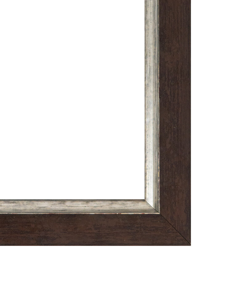 Een mooi afgewerkte rood/bruine lijst met zilveren rand van het type DLF350