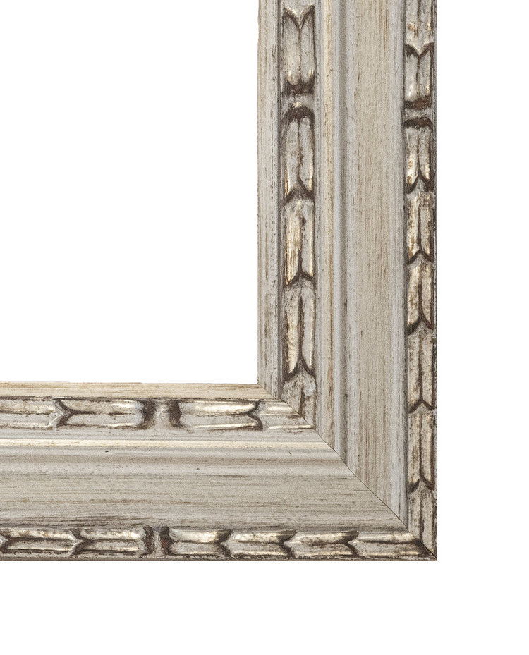 Een houten lijst met een zilver bruine kleur en ornament rand van het type DLF4984.