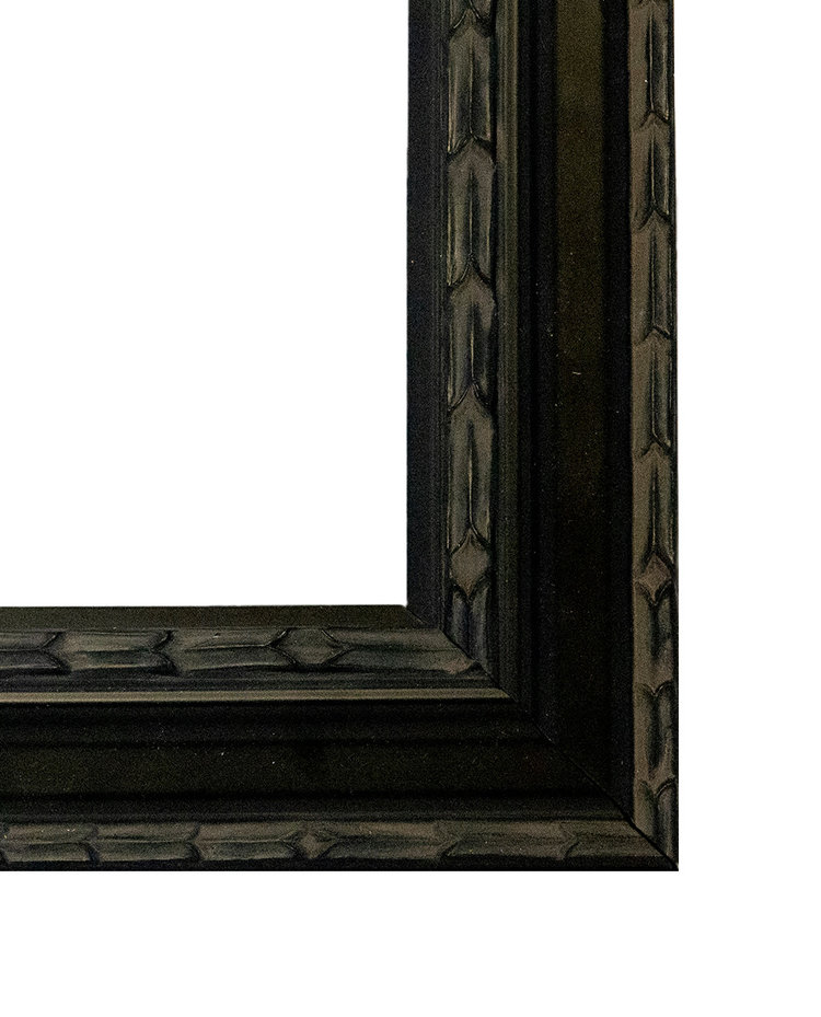 Deze lijst is afgewerkt in de kleur zwart waarbij de houtstructuur en ornamenten goed zichtbaar zijn. De lijst loopt naar binnen toe op, waardoor je werk letterlijk mooi naar voren komt. Een sieraad aan je muur. Het zwart van deze lijst past in bijna elk interieur.