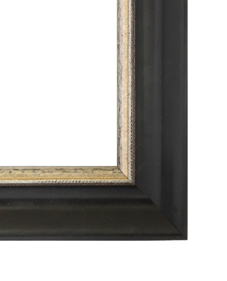 Deze lijst heeft een subtiel klassieke vorm en is afgewerkt met mat zwart fineer. De zilveren binnenrand krijgt je kunstwerk net dat beetje extra aandacht. Door het zilver is deze lijst vooral geschikt voor werken met koudere kleuren of grijstinten. Heeft je kunstwerk - of je interieur - meer warme kleuren, dan kan ditzelfde profiel in DLF6150 goud koper uitvoering misschien beter passen bij je werk.