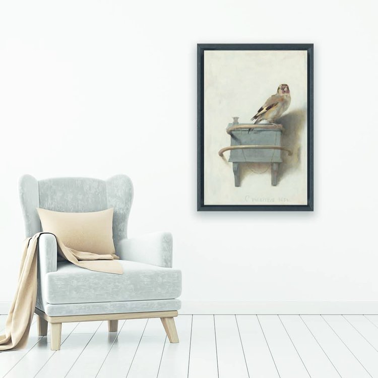 Wij hebben dit werk van Fabritius digitaal via het Mauritshuis verkregen en bieden het nu in 2 formaten (40 x 60 cm en 60 x 90 cm) aan op canvas geprint, opgespannen en ingelijst in een Premium Line zwarte baklijst.