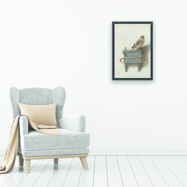 Wij hebben dit werk van Fabritius digitaal via het Mauritshuis verkregen en bieden het nu in 2 formaten (40 x 60 cm en 60 x 90 cm) aan op canvas geprint, opgespannen en ingelijst in een Premium Line zwarte baklijst.