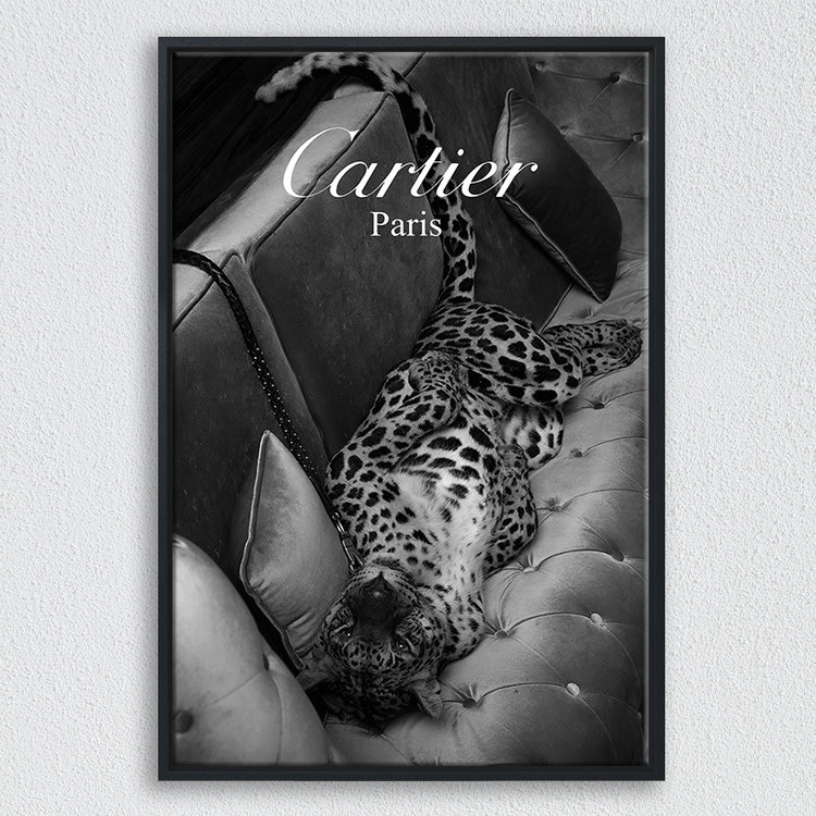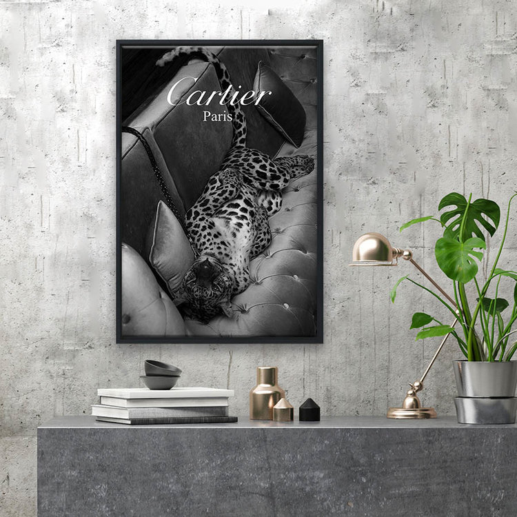 Leopard art print op canvas met zwarte baklijst