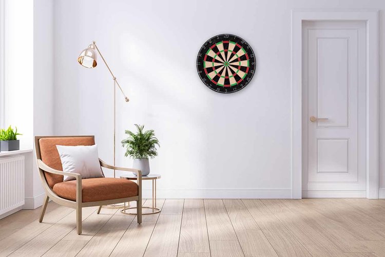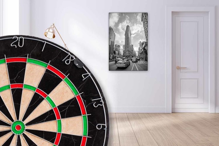 Wil je graag een dartbord ophangen, maar past dit niet binnen het interieur? Je kan het dartbord nu gemakkelijk verbergen door er een textielframe van 60 x 90 cm met een leuke print overheen te hangen. Ben je klaar met darten? Dan hang je het textielframe weer over het dartbord heen en heb je een mooie toevoeging in je interieur.