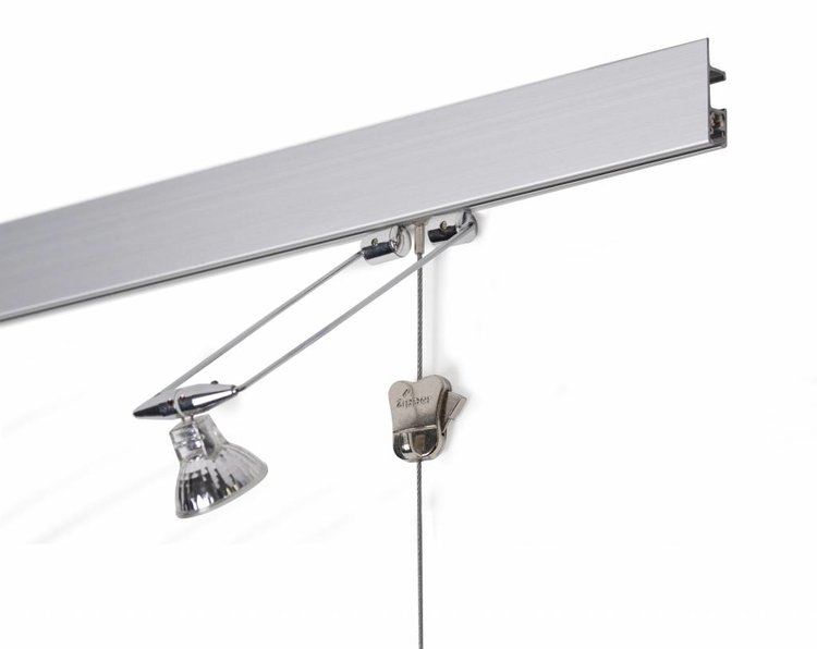 Als je een veilig en multifunctioneel ophangsysteem met geïntegreerde verlichtingsmogelijkheid van 12V wilt hebben dan kies je voor de STAS multirail. De rail wordt bevestigd aan de wand tegen de plafondrand. Wil je de rails op de wand maar onder het plafond (circa 1,5 cm) laten aansluiten, kies dan voor de STAS Multirail systeem. De huidige adapters / transformatoren zijn niet dimbaar.