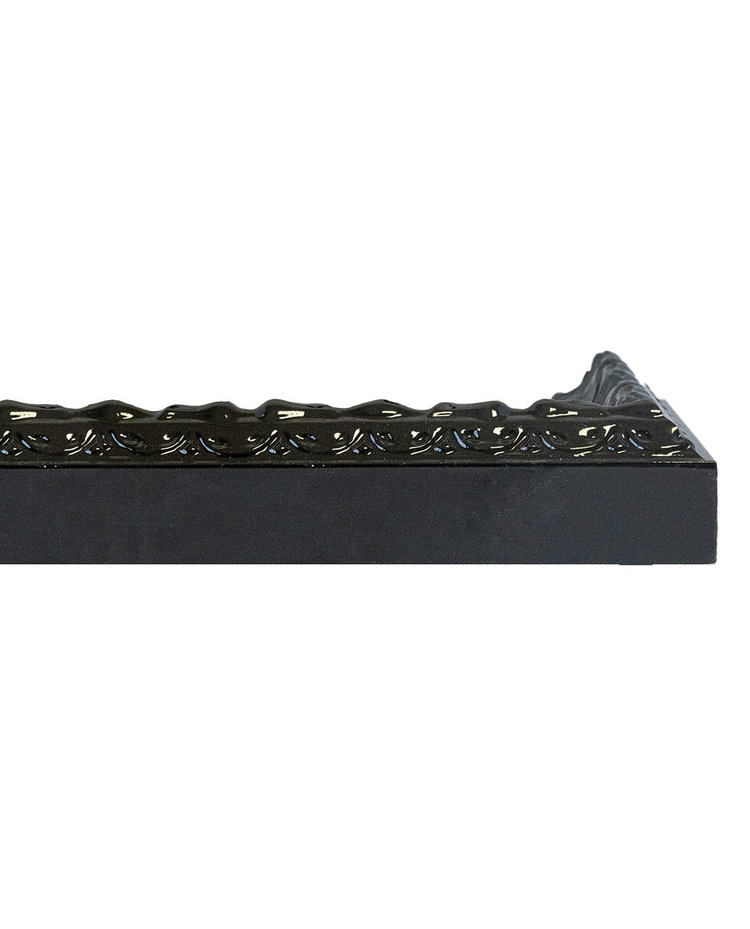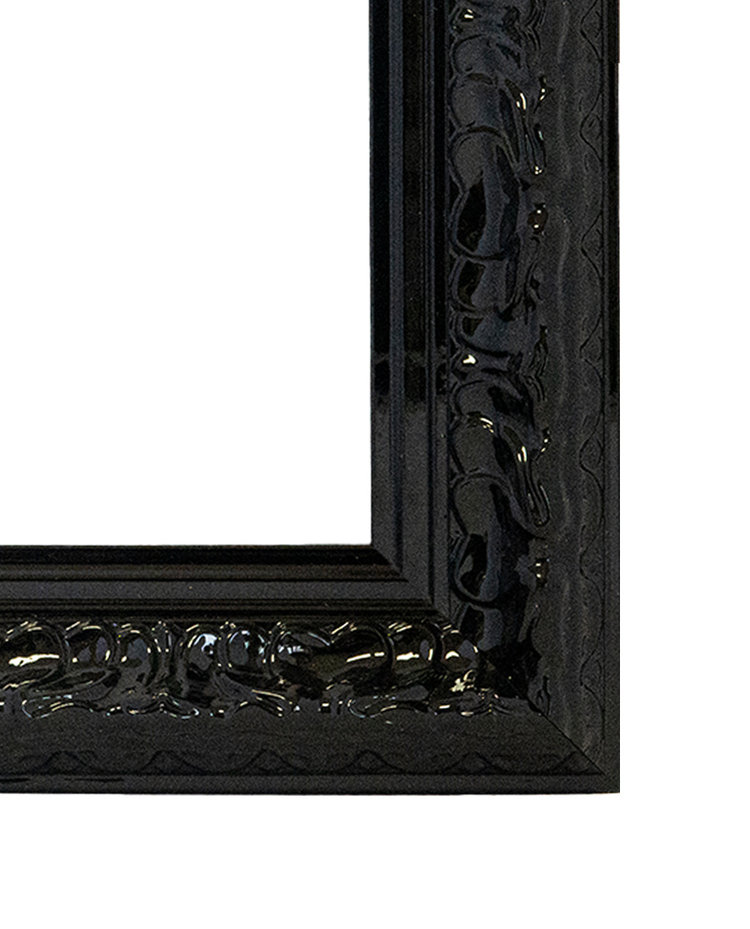 Fraaie glanzend zwarte ornament lijst voor het op maat inlijsten van zowel een art werk op papier, canvas of paneel. Deze lijst wordt volledig op maat voor jou gemaakt - ook museumglas is mogelijk en kunnen wij het inlijstwerk verzorgen.