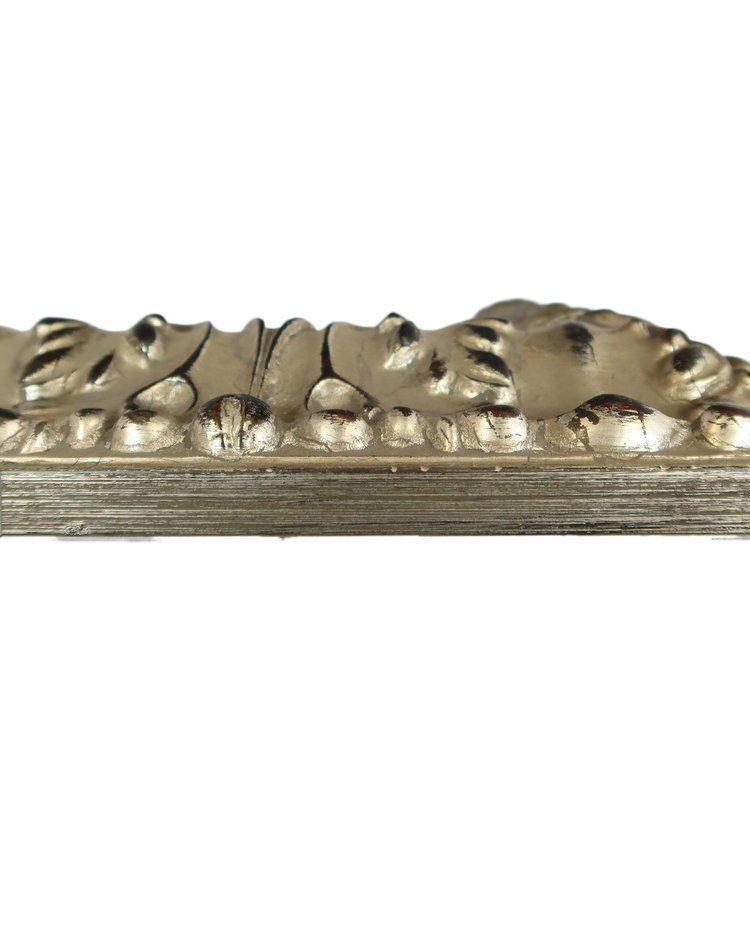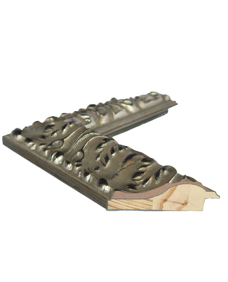 Deze lijst heeft een ietwat donkergrijs-zwarte afwerking op de ornamenten. We hebben ook een zilveren ornament lijst in dezelfde serie die bruine accenten heeft in de ornamenten.