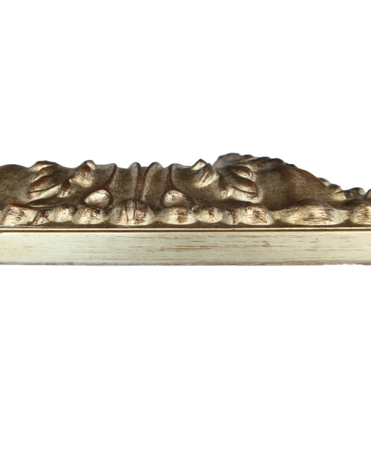 Een zilverkleurige brede ornament lijst - als maatwerk lijst leverbaar