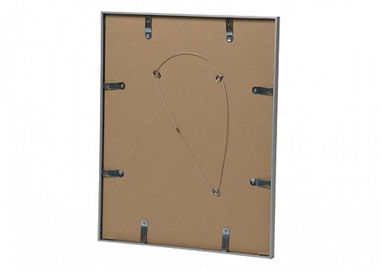 De MDF achterwand is 3,0 mm dik (klasse A) voorzien van voldoende (vaste) draaiveren met ophangogen en vanaf formaat 40x40 cm voorzien van driepuntskabelophanging.