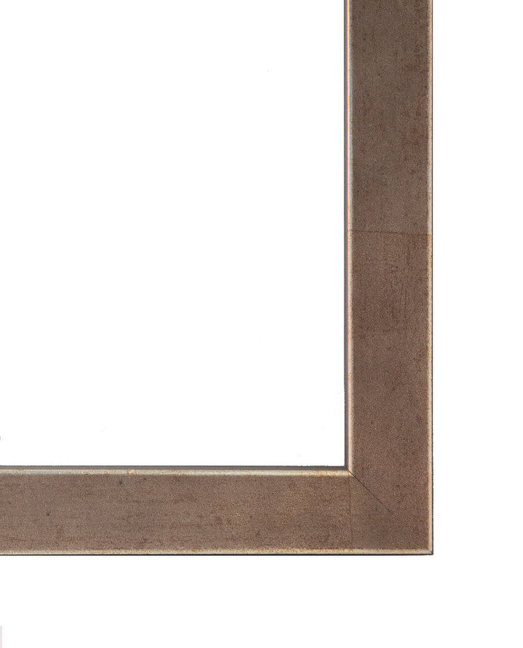 Een gematteerde bruine lijst van het type Sento II met duidelijke lijnen en vlakken voor een industriële uitstraling. Het mooie van de Sento lijsten is dat de zijkanten zwart zijn waardoor ze altijd een goed contrast vormen met de muur. Terwijl de lijsten aan de voorkant zijn afgewerkt in mooie subtiele kleuren en een licht glanzende rand. Omdat de lijst wat naar binnen loopt, krijgt je werk daarmee extra aandacht.