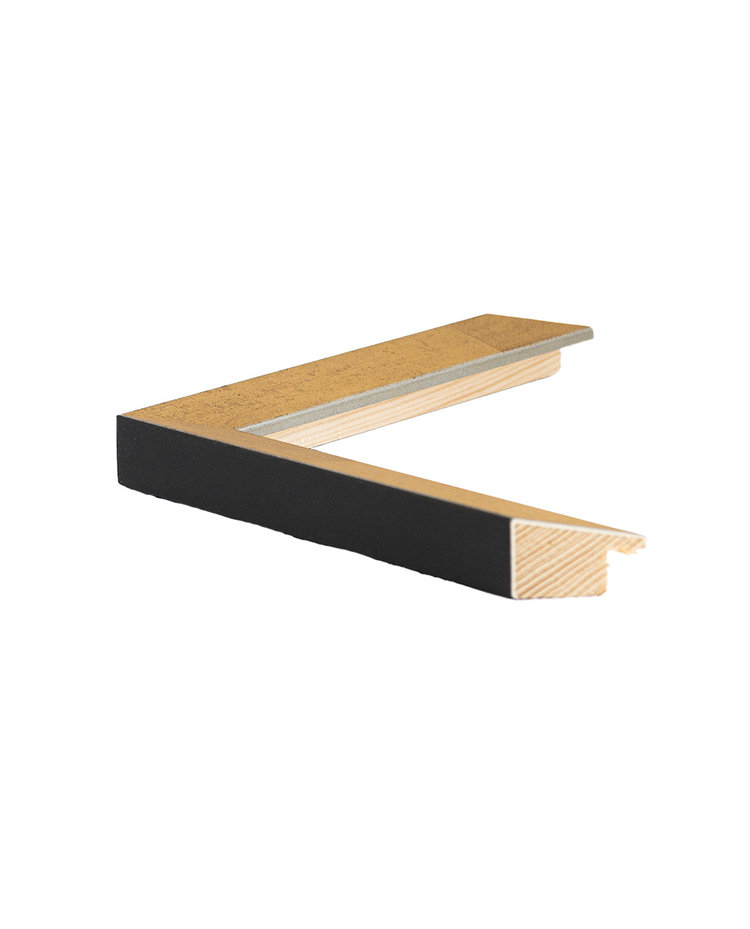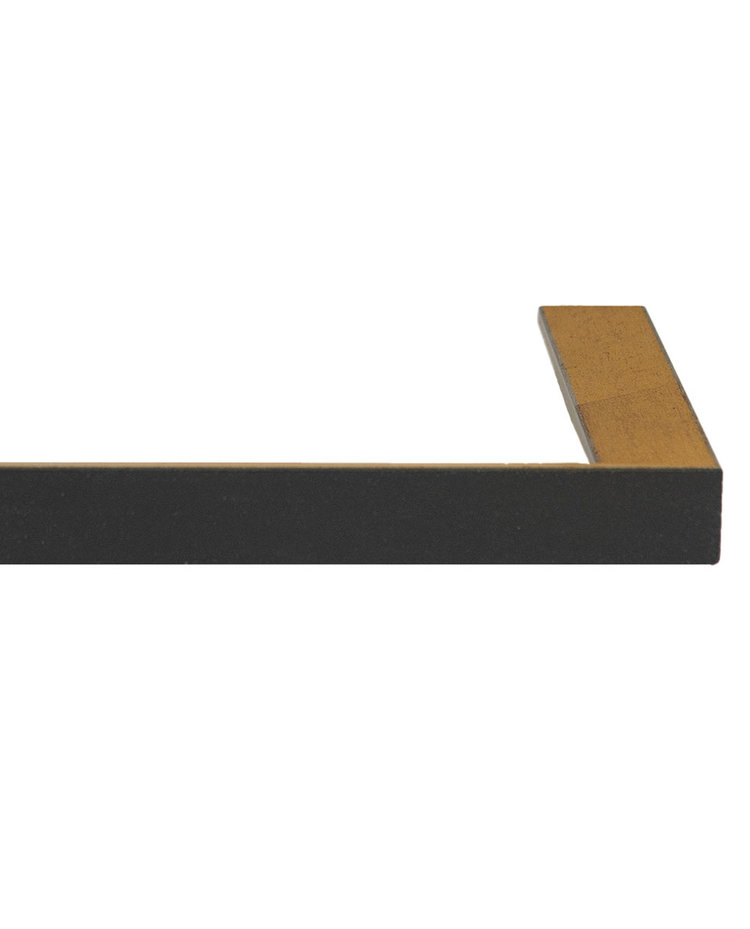 Een gematteerde donker gouden lijst van het type Sento II met duidelijke lijnen en vlakken voor een industriële uitstraling. Het mooie van de Sento lijsten is dat de zijkanten zwart zijn waardoor ze altijd een goed contrast vormen met de muur. Terwijl de lijsten aan de voorkant zijn afgewerkt in mooie subtiele kleuren en een licht glanzende rand. Omdat de lijst wat naar binnen loopt, krijgt je werk daarmee extra aandacht.