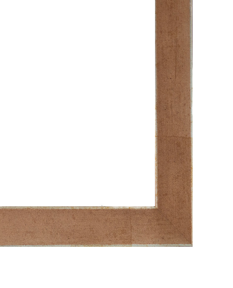 Een gematteerde koperen lijst van het type Sento II met duidelijke lijnen en vlakken voor een industriële uitstraling. Het mooie van de Sento lijsten is dat de zijkanten zwart zijn waardoor ze altijd een goed contrast vormen met de muur. Terwijl de lijsten aan de voorkant zijn afgewerkt in mooie subtiele kleuren en een licht glanzende rand. Omdat de lijst wat naar binnen loopt, krijgt je werk daarmee extra aandacht.