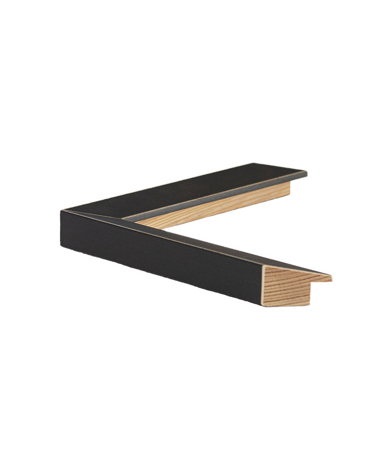 Een gematteerde oud zwarte lijst van het type Sento II met duidelijke lijnen en vlakken voor een industriële uitstraling. Het mooie van de Sento lijsten is dat de zijkanten zwart zijn waardoor ze altijd een goed contrast vormen met de muur. Terwijl de lijsten aan de voorkant zijn afgewerkt in mooie subtiele kleuren en een licht glanzende rand. Omdat de lijst wat naar binnen loopt, krijgt je werk daarmee extra aandacht.