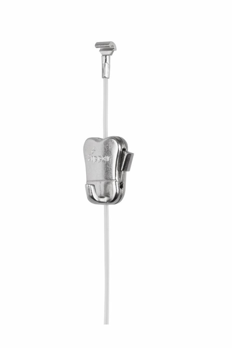 Maak je gebruik van een cliprail (ook Max en Pro) of Multirail van STAS? Dan kun je gebruikmaken van de fraai vormgegeven ZIPPER hanger met een Perlon (transparant) koord. De Zipper is volledig verstelbaar over het koord van 150 cm.