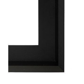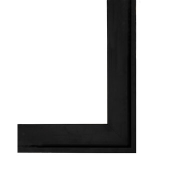 Fraaie zwarte houten baklijst met een geborstelde zilveren rand voor het inlijsten van schilderij of foto op doek. De baklijst is circa 24 mm diep waardoor deze uitstekend geschikt is voor het inlijsten van bijvoorbeeld een canvas werk van 2 cm diepte.