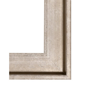 Mooie klassieke houten baklijst met een zilveren afwerking voor het inlijsten van schilderij of foto op doek. De baklijst is circa 28 mm diep waardoor deze uitstekend geschikt is voor het inlijsten van bijvoorbeeld een canvas werk van 2 cm diepte.