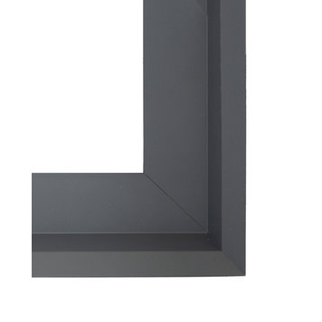 Fraaie zwarte houten baklijst met een geborstelde zilveren rand voor het inlijsten van schilderij of foto op doek. De baklijst is circa 28 mm diep waardoor deze uitstekend geschikt is voor het inlijsten van bijvoorbeeld een canvas werk van 2 cm diepte.