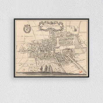 Prachtige vintage kaart geprint op art papier en geplakt op zuurvrij karton zodat het altijd mooi in de lijst zit. Ingelijst in een Pro Line zwarte aluminium lijst voorzien van helder of anti reflectie glas in formaat 30 x 40 cm, 40 x 50 cm en 50 x 60 cm