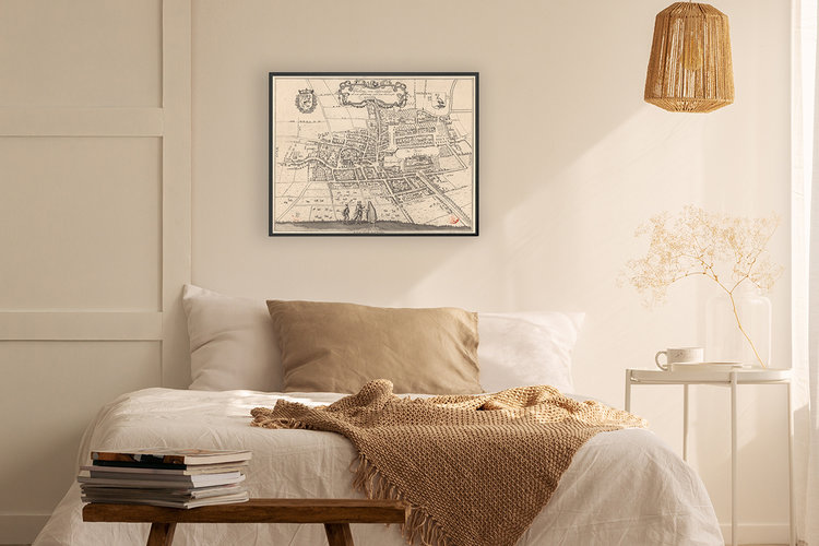 Prachtige print vintage kaart Den Haag geprint op art papier van de Art2EXPO Gallery SHOP. Deze vintage kaart van Den Haag is gemaakt in 1560 door een anonieme prenten maker. De kaart heeft aan de rechter- en linkerkant het wapen van Holland en het wapen van Den Haag staan.