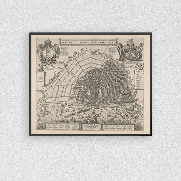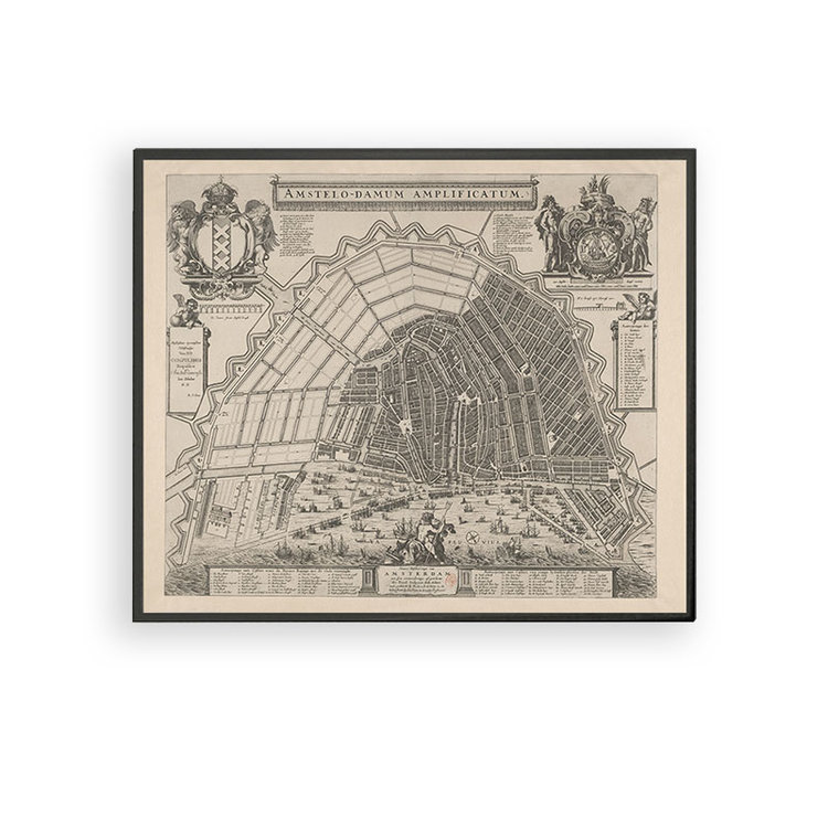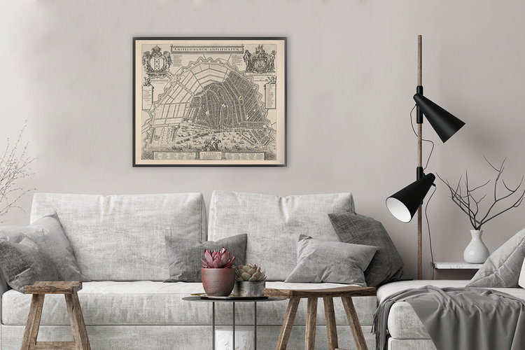 Antieke kaart Amsterdam print ingelijst in zwarte aluminium lijst