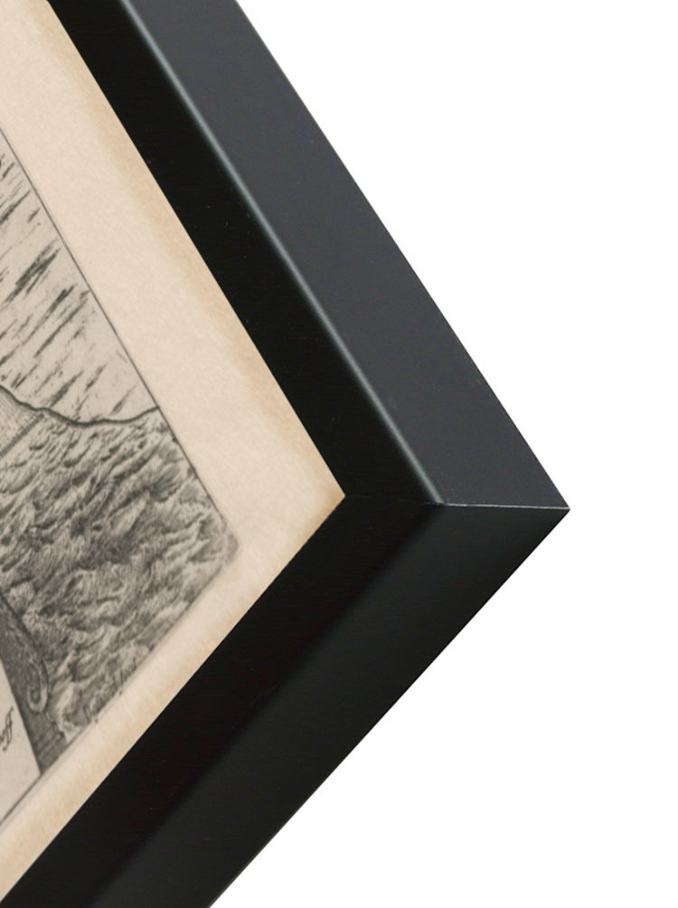 De print wordt verzorgd op 220 grams satin art paper en vervolgens zorgvuldig geplakt op zuurvrij karton. Hierdoor weet je zeker dat de poster niet storend gaat golven in de lijst. De art print wordt netjes ingelijst in een zwarte aluminium lijst uit de Pro Line serie welke is voorzien van een 2 mm dikke helder float geslepen glasplaat. Of er kan ook gekozen worden voor een gematteerde anti reflectie glasplaat. Het achterpaneel van de lijst is voorzien van een ophangkabel.