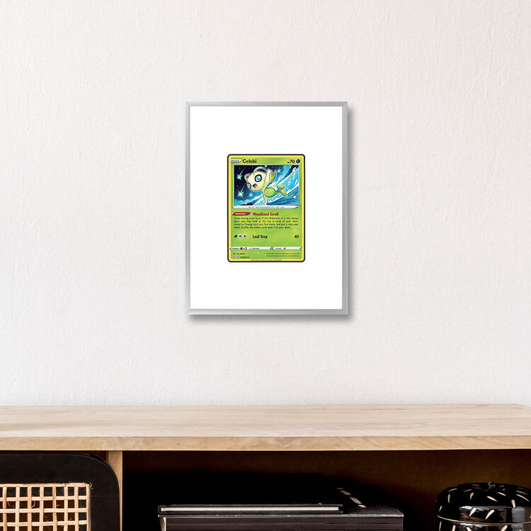 Zwarte of zilveren Pokémon lijst voor het inlijsten van 1 Pokémon kaart met een witte achtergrond.